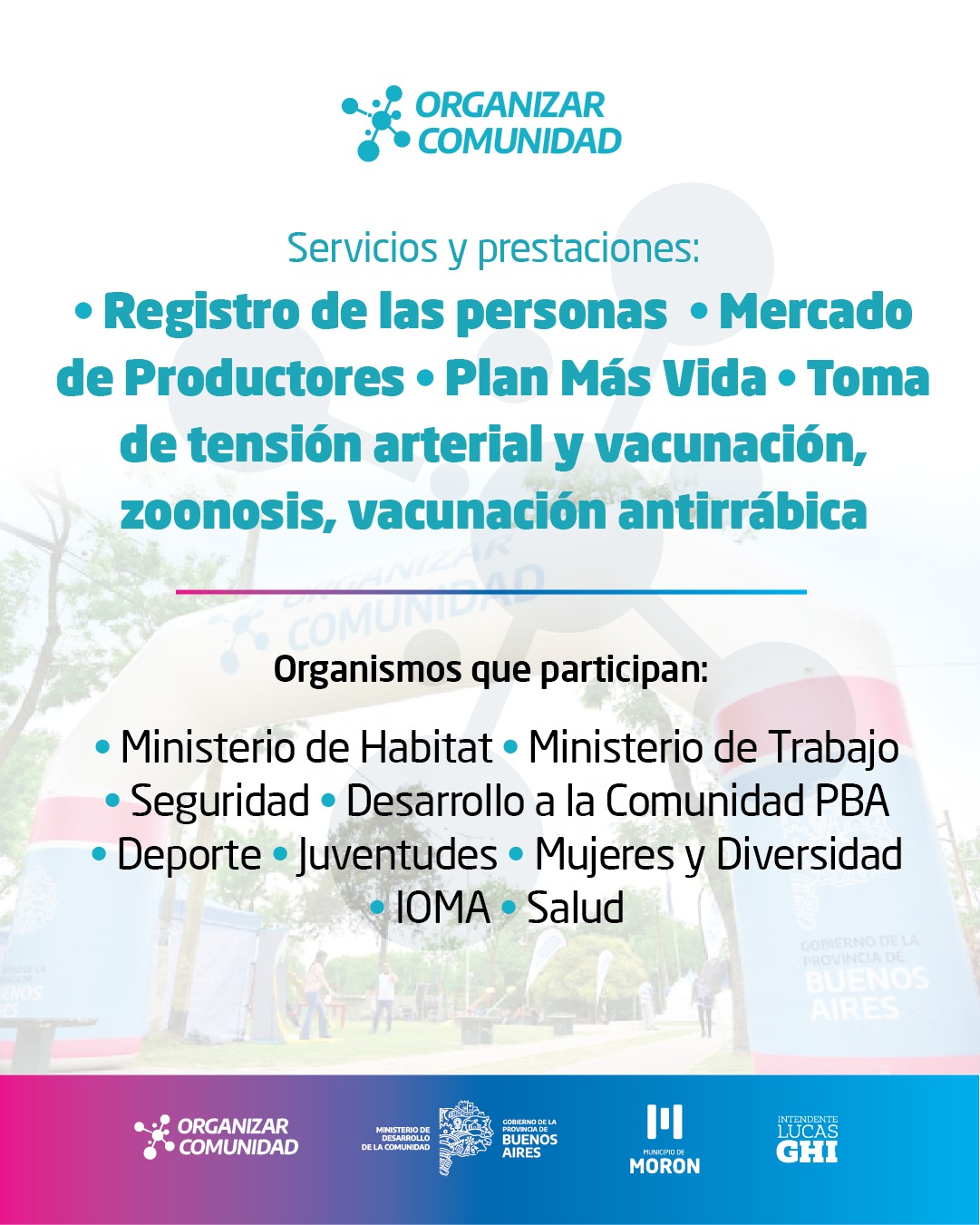 Desde el municipio de Morón informaron que conjuntamente con el Ministerio de Desarrollo de la Comunidad de la Provincia, llevarán adelante el operativo Organizar Comunidad en Morón sur el jueves 28 y viernes 29 de agosto en Pte. Ibáñez y Grito de Alcorta. La mencionada propuesta permitirá realizar trámites de manera más accesible para todos los vecinos del distrito.