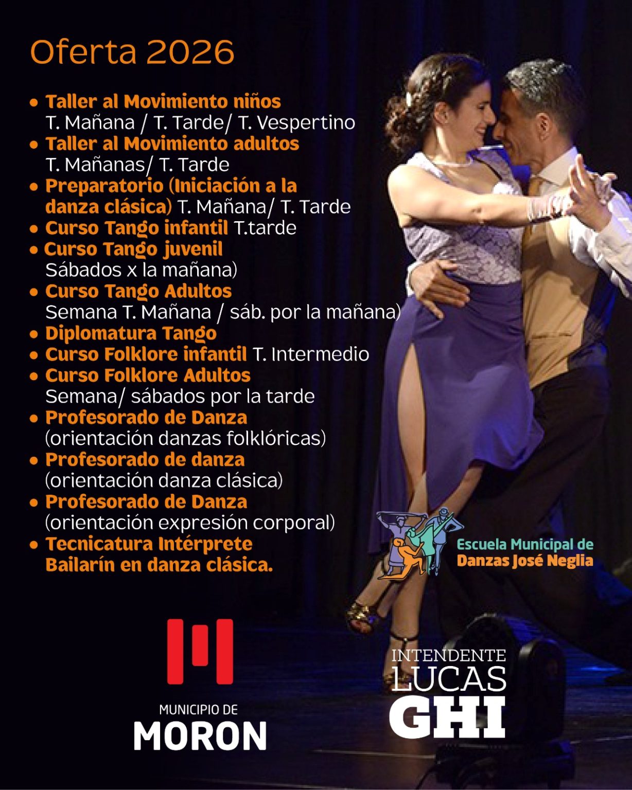 Desde el municipio de Morón informaron que ya se encuentran abiertas las inscripciones 2026 para la Escuela Municipal de Danzas José Neglia, una institución referente en la formación artística que cada año convoca a cientos de estudiantes.