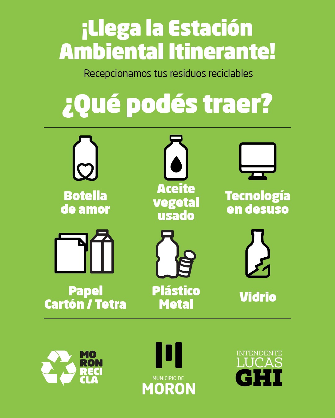 Esta semana el municipio de Morón pone en marcha la Estación Ambiental Itinerante, una iniciativa que promueve la recolección diferenciada de residuos reciclables en plazas y espacios públicos del distrito.