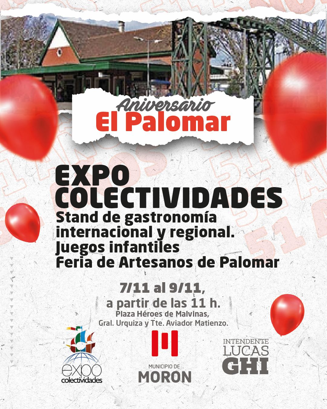 Del viernes 7 al domingo 9 de noviembre, a partir de las 11, los vecinos podrán disfrutar de la Expo Colectividades, que incluirá stands de gastronomía internacional y regional, juegos para las infancias y la tradicional Feria de Artesanos de El Palomar.