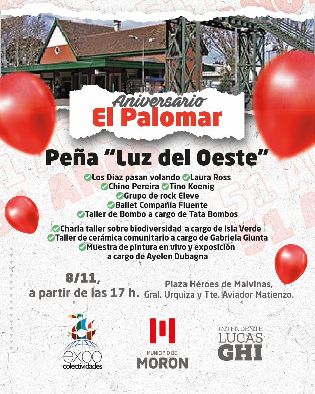 Este fin de semana la ciudad de El Palomar cumple 51 años y lo festejará con tres jornadas de actividades y propuestas culturales para toda la familia en la Plaza Héroes de Malvinas (Gral. Urquiza y Tte. Aviador Matienzo).