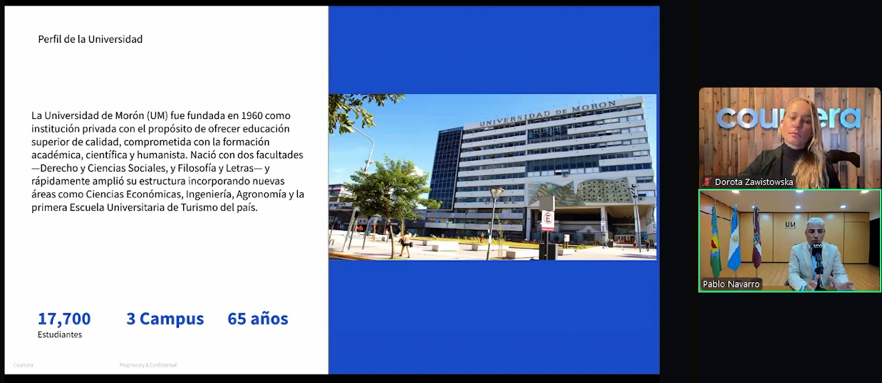 Cabe destacar que la invitación de Coursera representa un reconocimiento explícito a la labor de la Universidad de Morón y consolida su posición como referente en innovación pedagógica a nivel global. Este hito refuerza su compromiso con una educación superior de vanguardia, capaz de anticiparse a las demandas del futuro profesional y de enriquecer la formación universitaria con competencias específicas, adaptables y transferibles al mundo del trabajo.