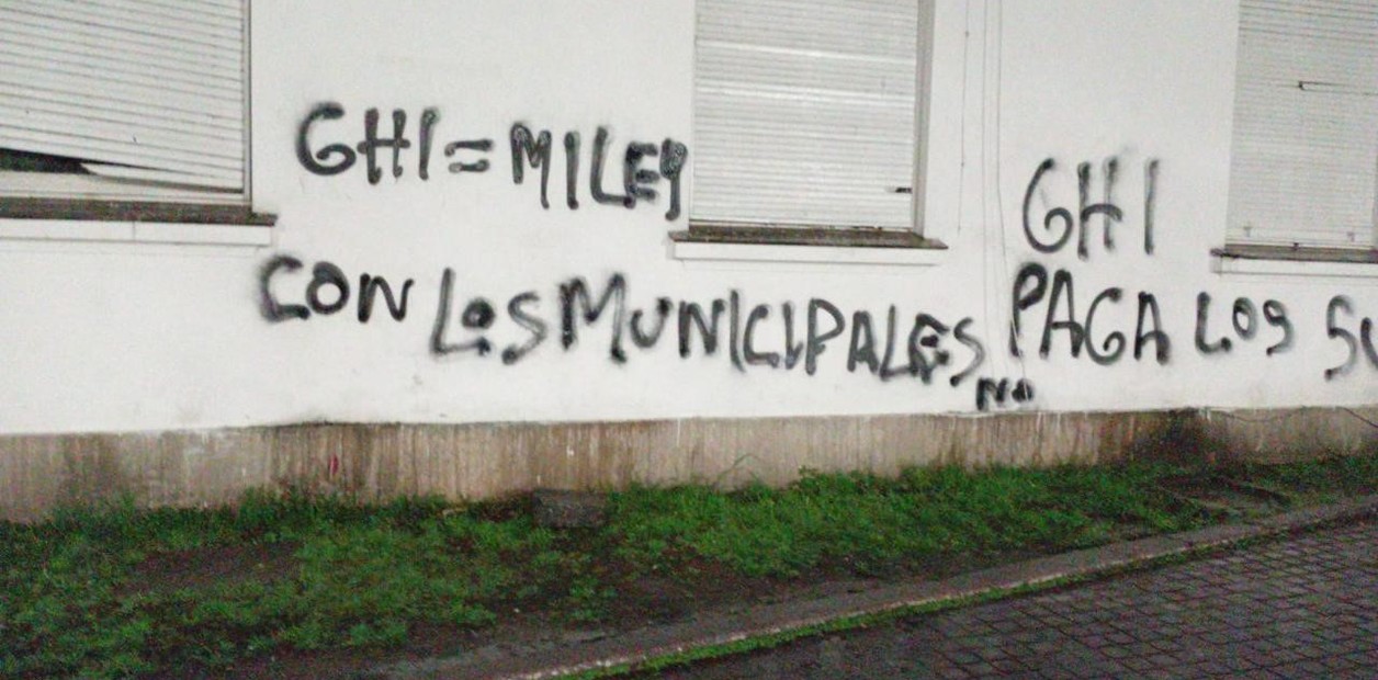 El lunes pasado, tanto el Palacio Municipal como el Hospital Lavignole amanecieron con pintadas y mensajes contra el intendente Ghi, como modo de reclamos y protestas por las demoras en el pago de los salarios, el incumplimiento de liquidación de horas extras trabajadas y el cesanteo a parte del personal municipal. Las pintadas fueron realizadas a la madrugada y con gente encapuchada, según testigos y registros de las cámaras que les señalaron al diario Clarín.