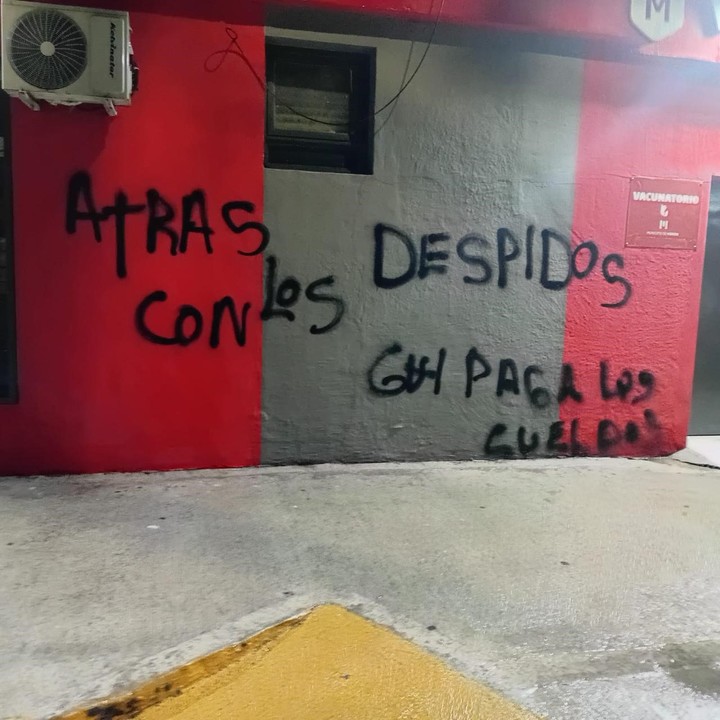 Según indicaron, las pintadas marcaron reclamos por los salarios que no se abonaron en tiempo y forma, ya que fueron percibidos de manera parcial después de la fecha límite (que era el viernes 30 de noviembre); y empleados que tomaron conocimiento de manera informal de sus no renovaciones de contratos (serían unas 400 personas, con posibilidades de que el número se extienda); y las horas extras trabajadas no fueron liquidadas correctamente.